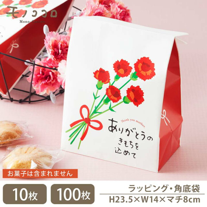 楽天市場 母の日 角底袋 10枚入 メール便OK100枚入 母の日 カーネーション ギフト プレゼント 袋 お母さん ありがとう ラッピング贈り物 花 雑貨 リボン 可愛い カジュアル 気軽 : モノココロ。