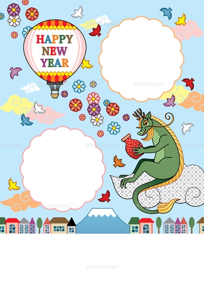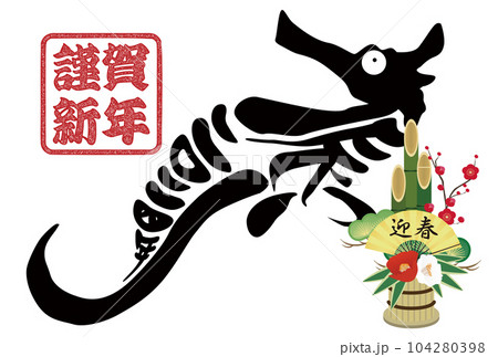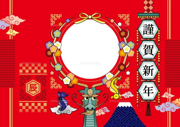 龍とお正月飾りを組み合わせた辰年に使える年賀状のテンプレートのイラストのイラスト素材104539753- PIXTA。