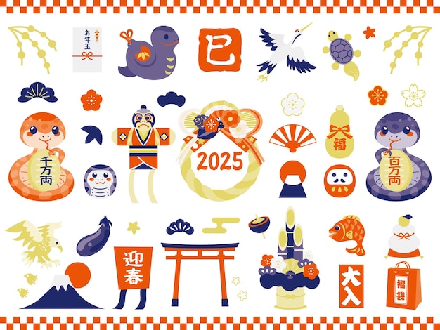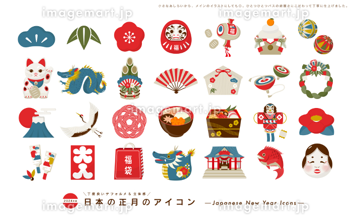 辰年 お正月の縁起物イラストセット - 商用利用可能な写真素材・イラスト素材ならストックフォトの定額制ペイレスイメージズ。