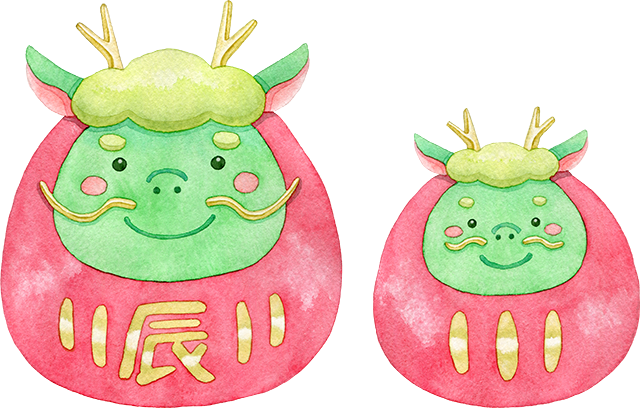 辰年の親子だるまの水彩イラスト水彩の挿し絵屋さん。