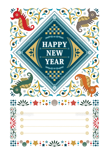 辰年イラスト年賀状デザインカラフル魚タツノオトシゴフレームのイラスト素材FYI07863744ストックフォトの QleanMarket キュリンマーケット。