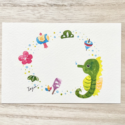 透明水彩画 3枚セット「タツノオトシゴ」イラスト 辰年 年賀状 お正月 敬老の日 タツ 龍 お年賀 2024年 ポストカード marron125 通販16510089Creema クリーマ。