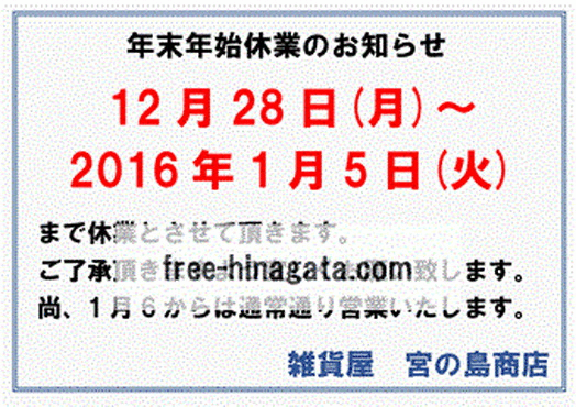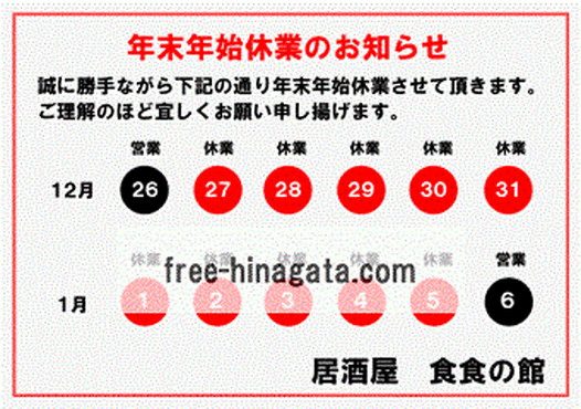 年末年始休業のお知らせの貼り紙フリー貼り紙のペラガミ.com。