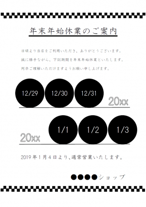年末年始休業のお知らせの張り紙 - Wordで作成した無料テンプレートのダウンロード。
