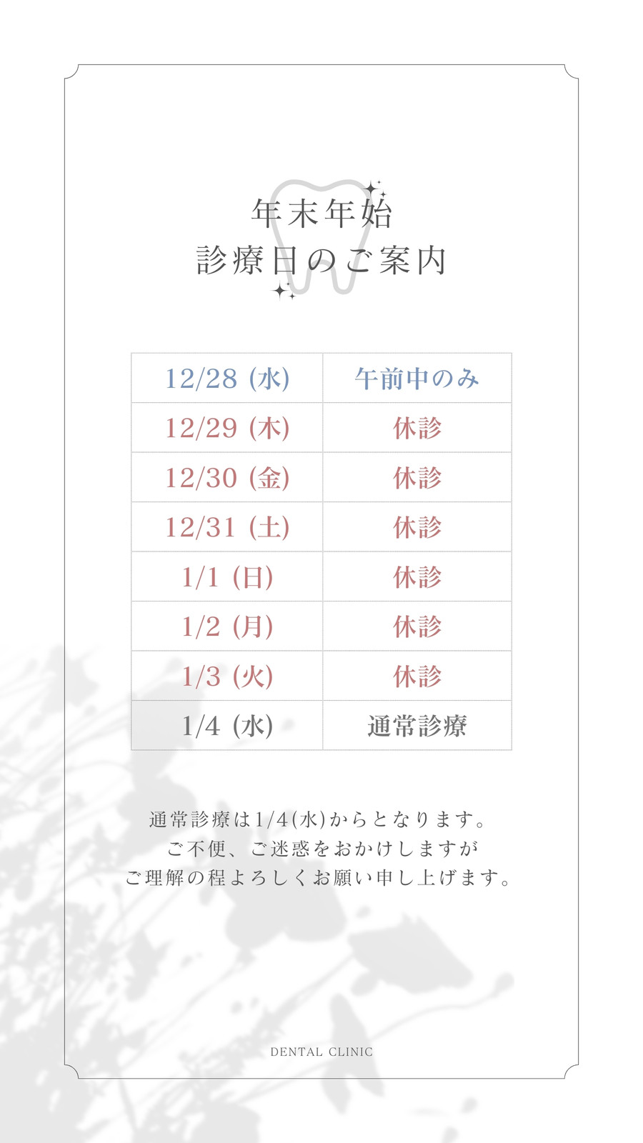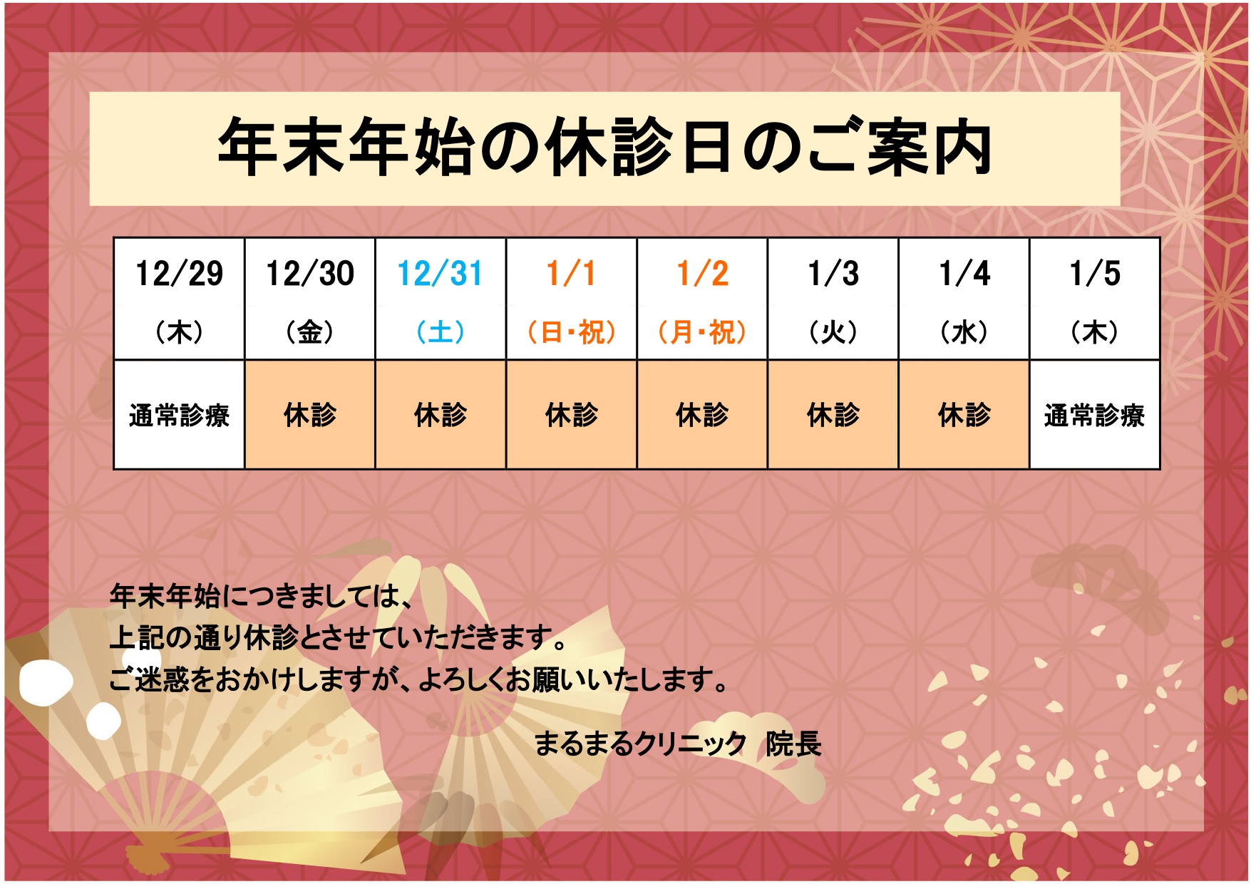 年末年始休診のお知らせ・張り紙 長期休業・夏季休業・冬季休業 病院やクリニックが使えるシン。