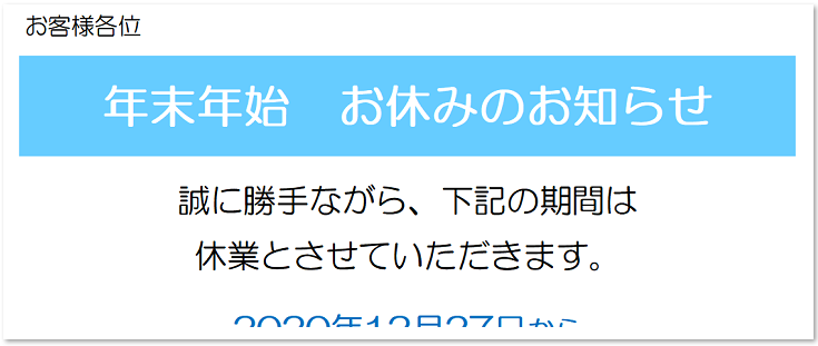 今すぐ使える年末年始の休業お知らせ例文- 沖縄のホームページ制作は格安提案のリアサポートデザイン事務所まで。