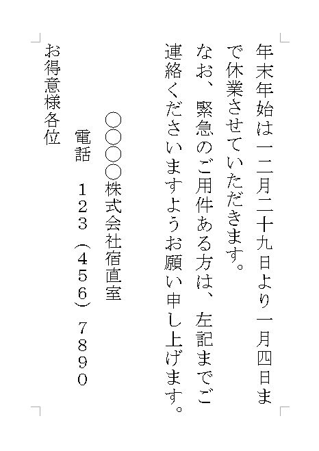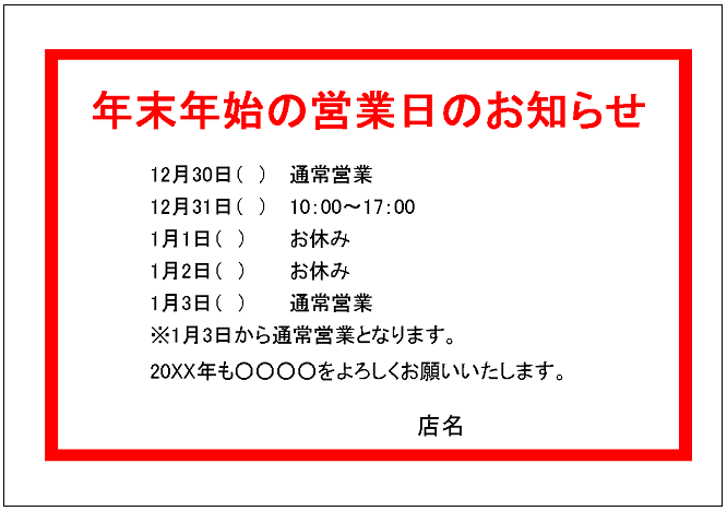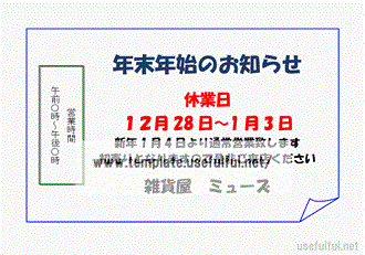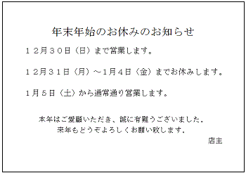 お知らせ 年末年始休業:ハガキ のテンプレート・例文:ワード Wordテンプレート・フリーBiz。