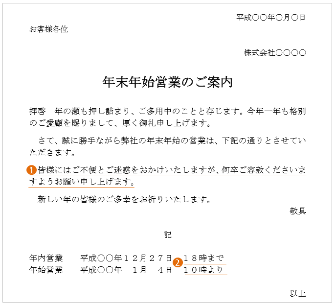 年末年始のお知らせの書き方ガイド│すぐに使える例文とテンプレート付き書式の例文書き方コラムbizocean ビズオーシャン ジャーナル。