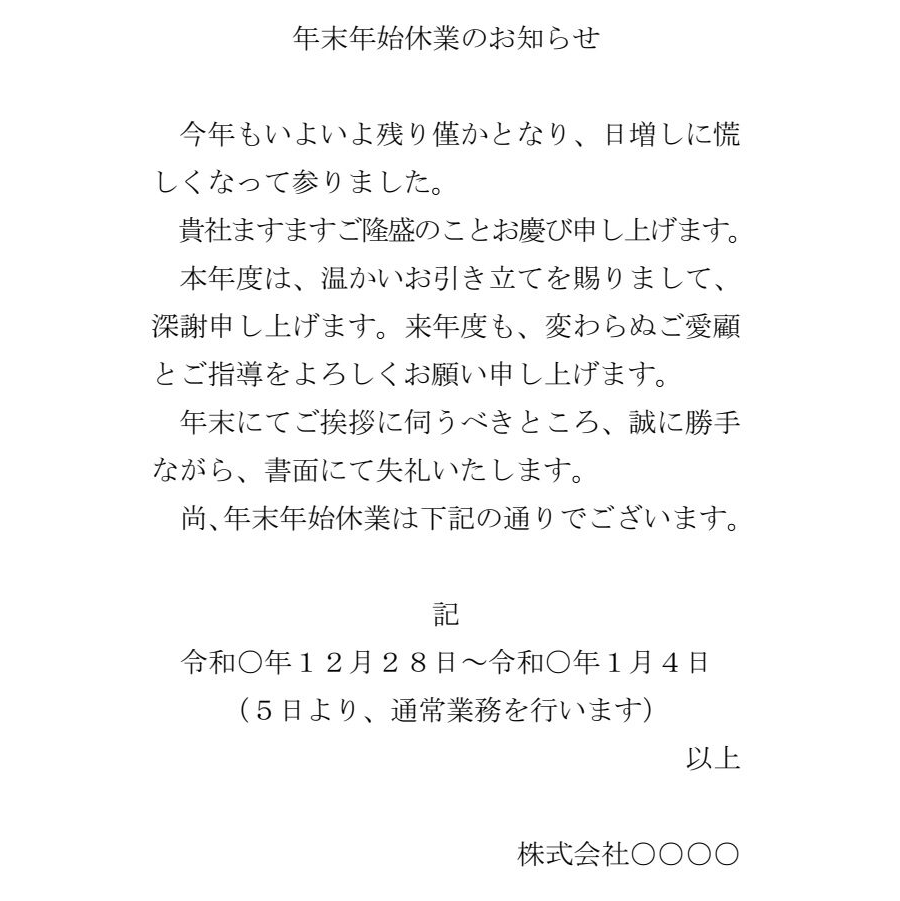 年末年始のお知らせ 年末年始休業のお知らせ例文・文例・書き方 テンプレート ビジネス文書形式 01 ワード Word-文書 テンプレートの無料ダウンロード。