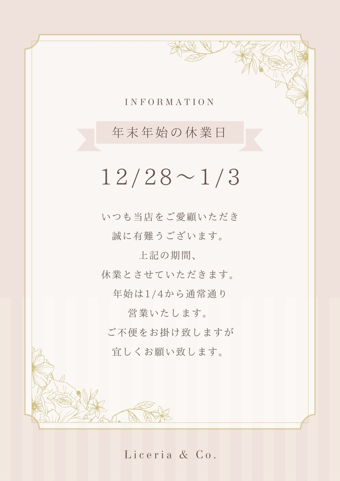 年末年始に利用出来る、営業のお知らせ・案内の張り紙💗無料ダウンロード「かわいい」雛形・テンプレート素材。