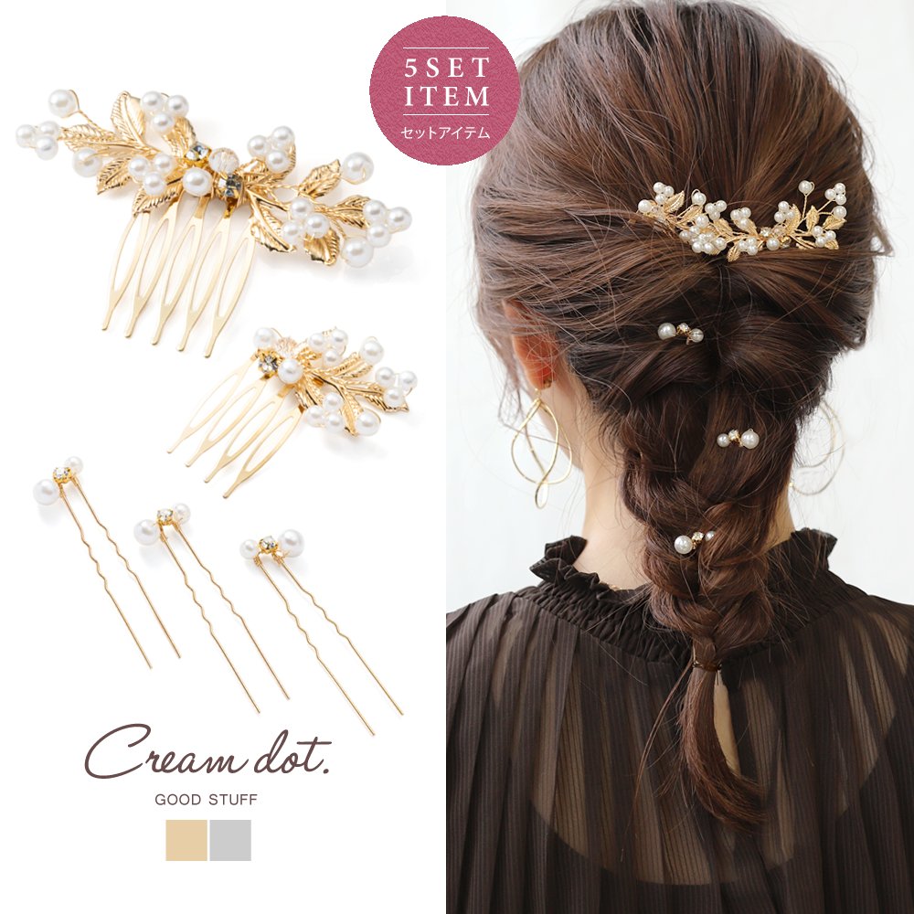 ゆうパケット 5点セット 結婚式アクセ ヘアピン ヘアコーム ヘアアクセサリー ヘッドアクセサリー パール リーフ 葉 まとめ髪 髪飾り 花飾り結婚式 二次会 パーティー ゲスト お呼ばれ 大人 ゴールド シルバーの通販Cream dot クリームドット 公式サイト。