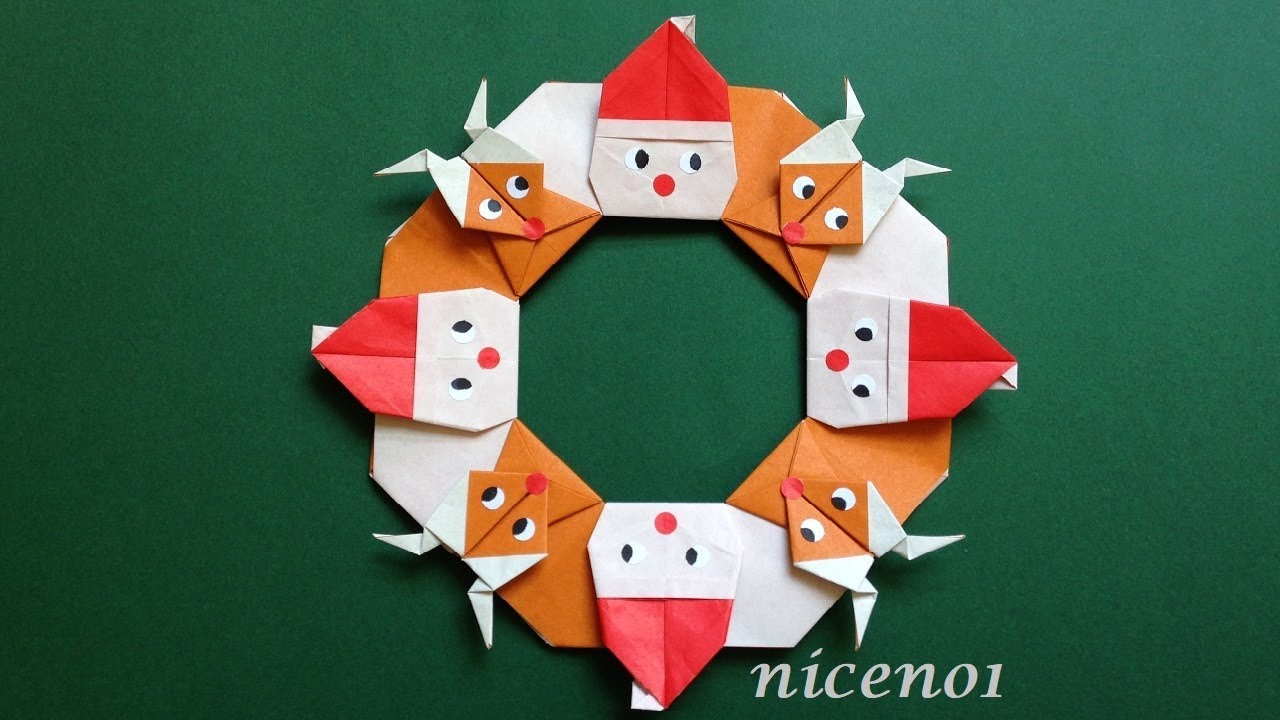 簡単折り紙サンタクロースとトナカイの折り方 おりがみペーパークラフトクリスマス保育士保育園工作制作サンタクローストナカイクリスマスパーティ。
