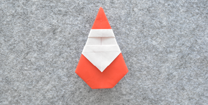 折り紙サンタクロースの簡単な作り方1枚で立体的に自立にするサンタさん。