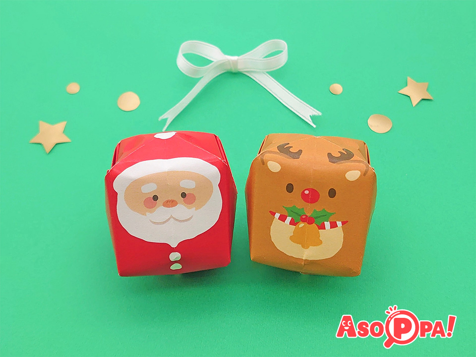 折り紙 ぽってりサンタとトナカイさんの作り方OrigamiDrop shape Santa Claus and Reindeerinstructions。