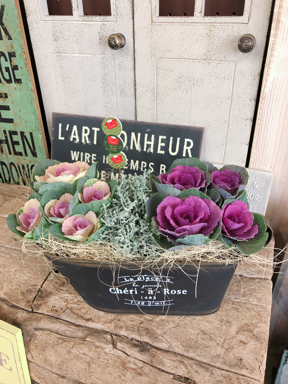現品SALE♡ラスト 6種類ガーデニング 葉牡丹入り寄せ植え♡ピンク系ブリキ鉢♪お正月ピックつき その他インテリア雑貨 雅楽 うた 通販15186565Creema クリーマ。