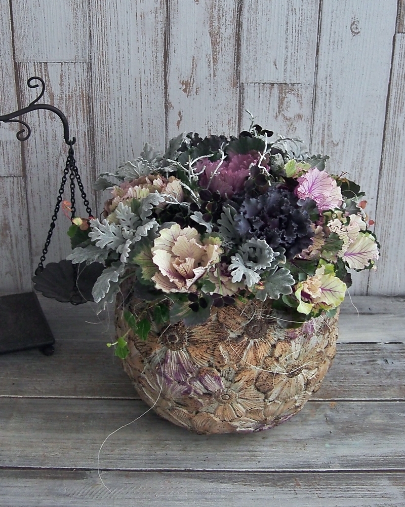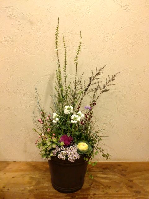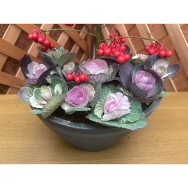 花寄せ植え 正月用 ハボタン&ジュリアン&チェッカーベリー ナチュラルアンティーク調樹脂ポット その他インテリア雑貨 lavenderherb 通販10861281Creema クリーマ。