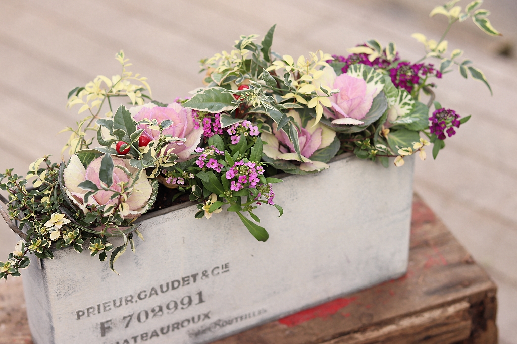 クリスマスもお正月も 葉牡丹×アリッサムの寄せ植えリースを作りました!LEE。