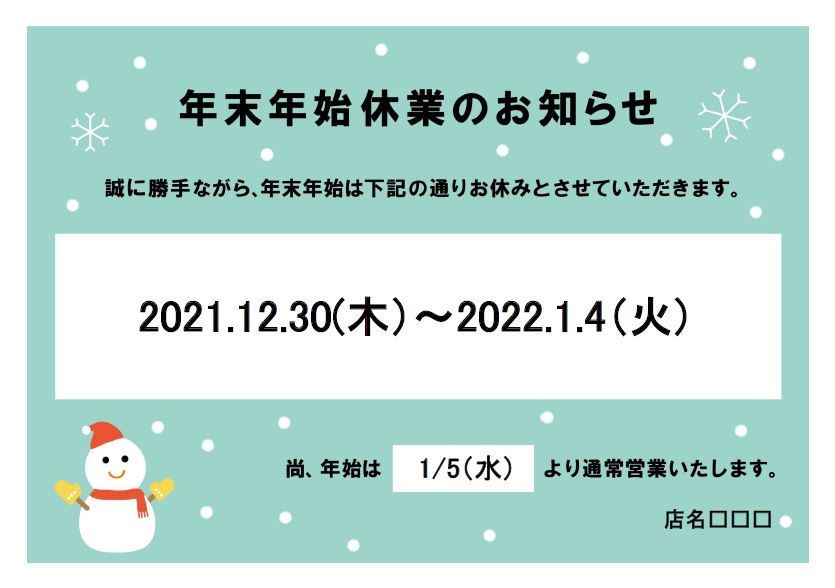 年末年始休業日2ひな形無料の雛形・書式・テンプレート・書き方ひな形の知りたい。