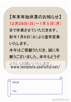 お知らせ 年末年始休業:ハガキ のテンプレート・例文:ワード Wordテンプレート・フリーBiz。