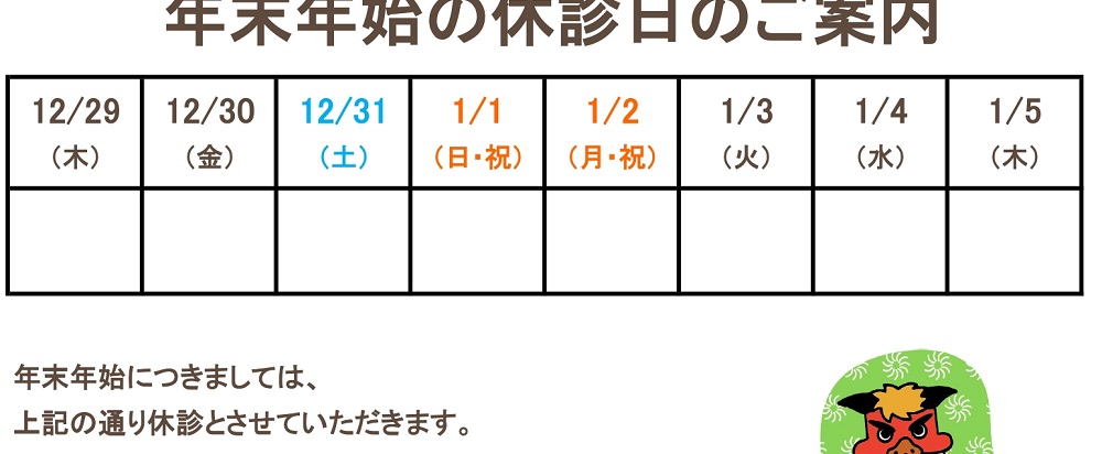 画像保存でメールやLINEに使える「年末年始のご案内」休診日や休業日のお知らせをExce イラストボックス「プレミアム」テンプレート。