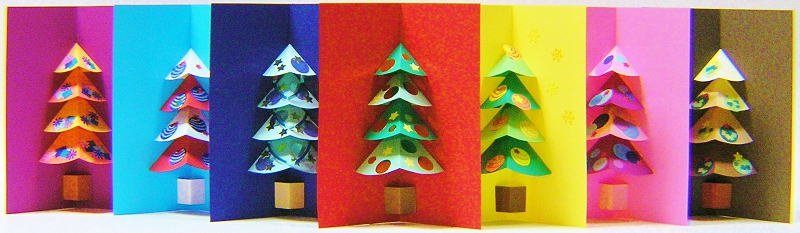 立体的な飛び出すクリスマスカードの作り方!簡単なツリーやサンタのカードが作れる!色とりどり。