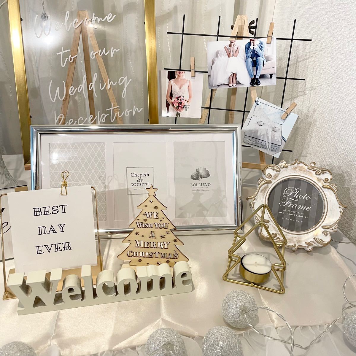 クリスマスに近い結婚式だったので、クリスマスっぽさを入れつつ、大人可愛く華やかなイメージで作られたウェルカムスペース😊お付き合い歴が長く、沢山写真があるので、デジタルフォトや写真を沢山飾られた素敵な空間に仕上がっています✨@t.1221.wd さん、ありがとう。