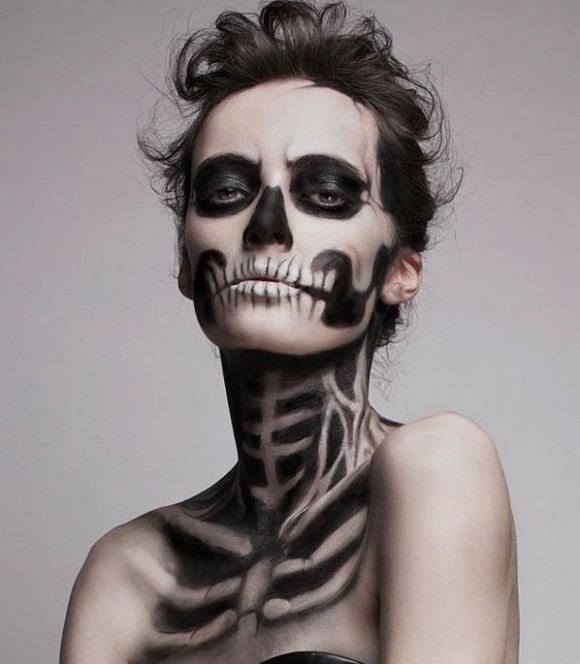 ハロウィン仮装もモードにキメる! ニュートラルカラーのお洋服にもピッタリ合うフランス発「ガイコツ」メイクにチャレンジせよPouch ポーチ。