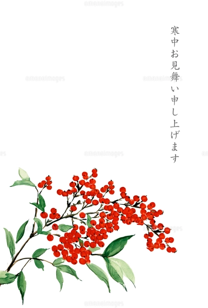 寒中お見舞い ハガキ 南天 水彩画 文字ありのイラスト素材FYI03588114ストックフォトの QleanMarket キュリンマーケット。