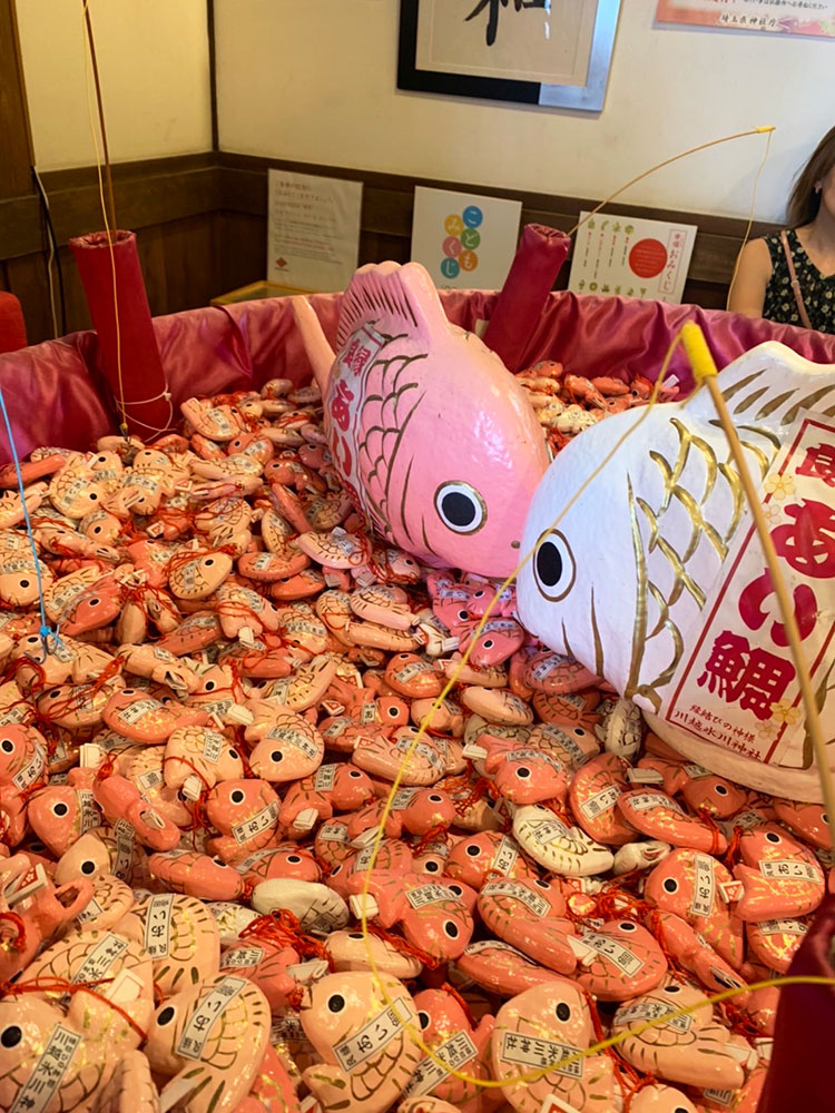 川越氷川神社で鯛のおみくじを釣るALIS。