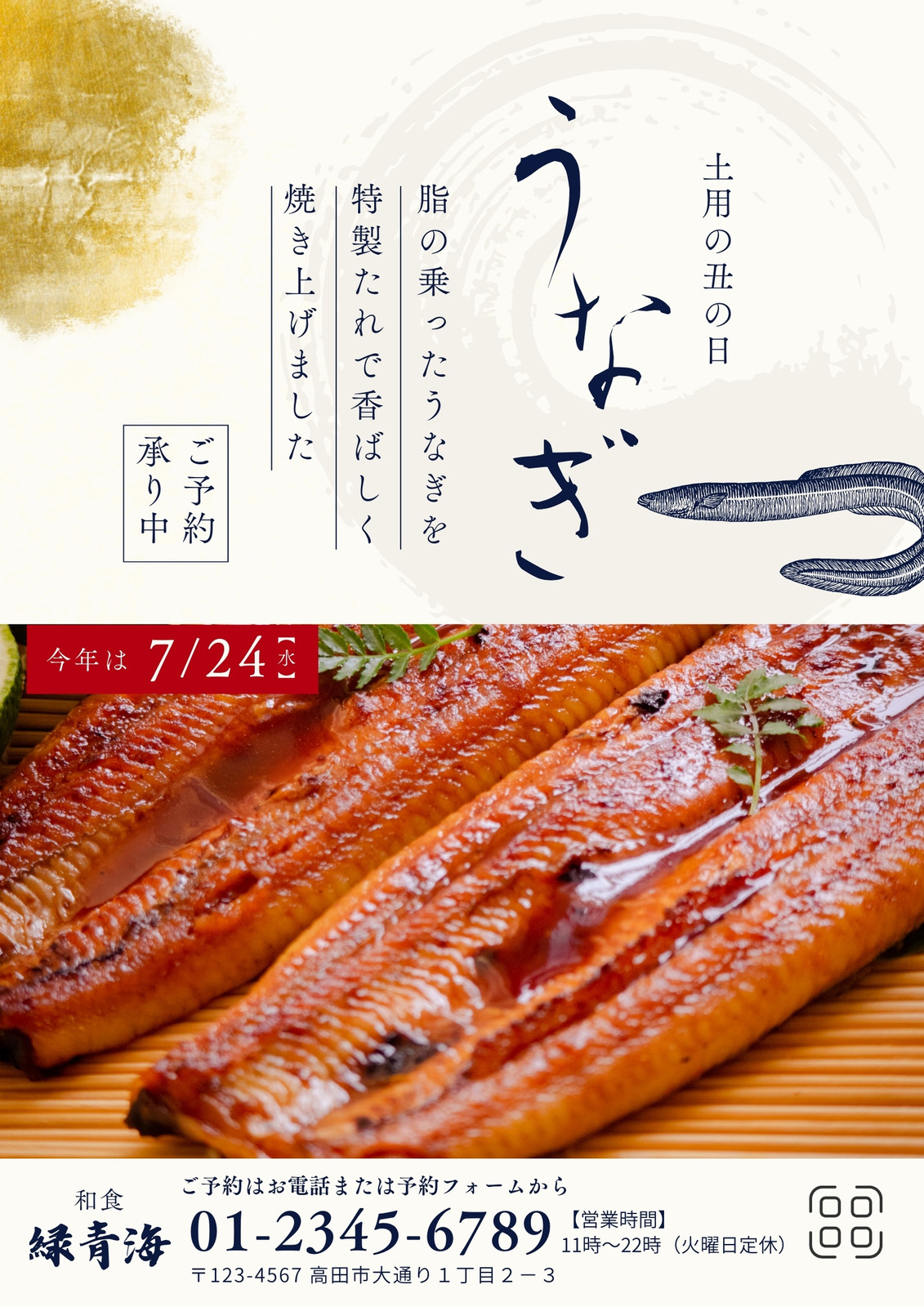 土用の丑の日のチラシの無料チラシテンプレート 13364 - デザインAC。