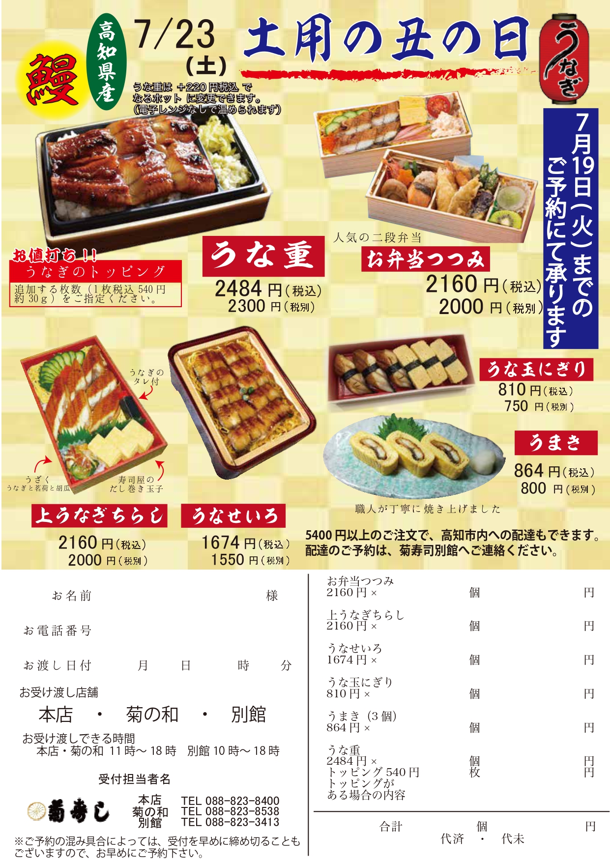 土用丑の日 7 20 土用二の丑 8 1 ご予約始まりました –株 三徳 Fine Foods & Better Life。