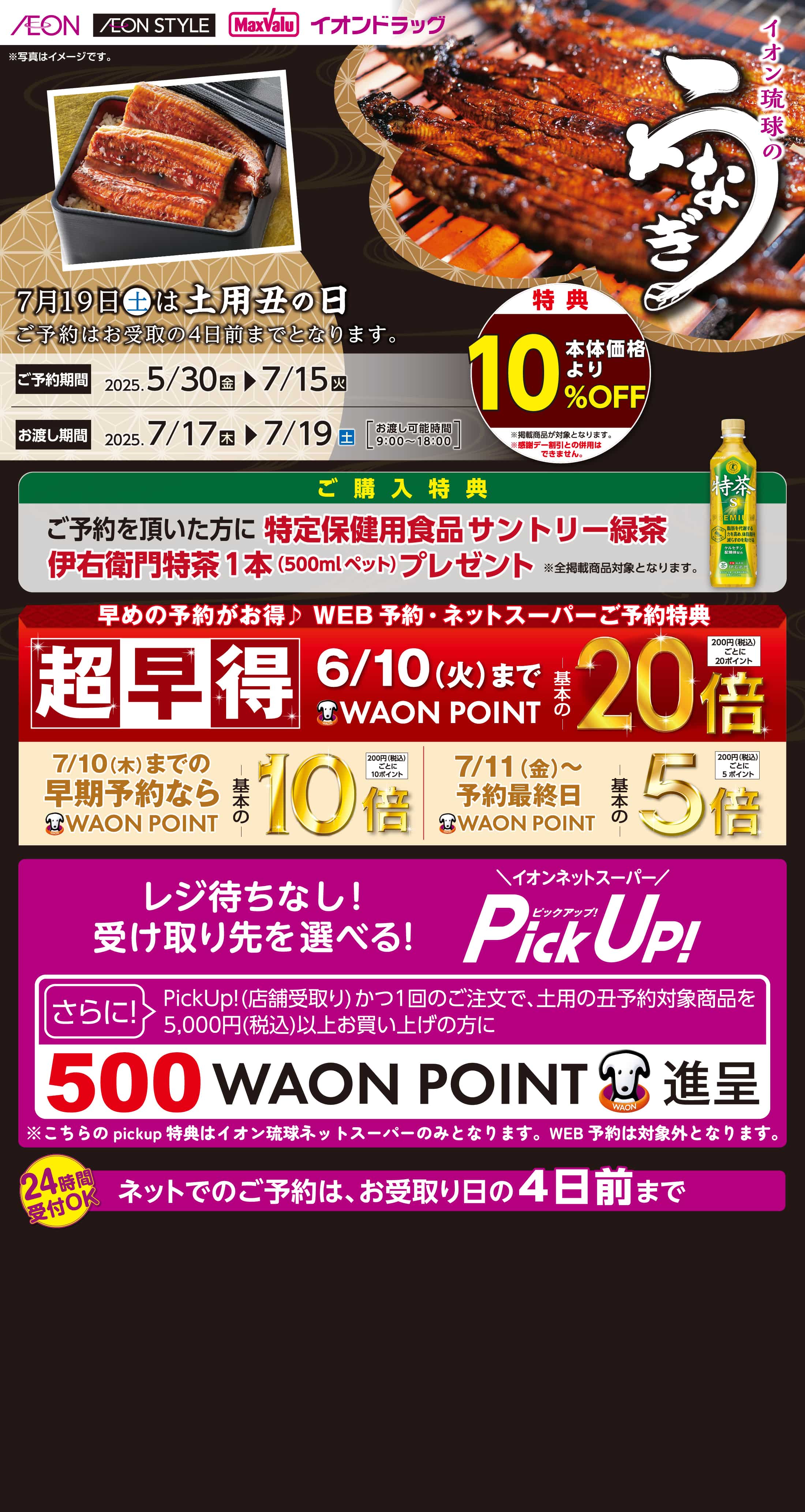 2025 土用丑の日 うなぎご予約承り中イオン琉球株式会社。