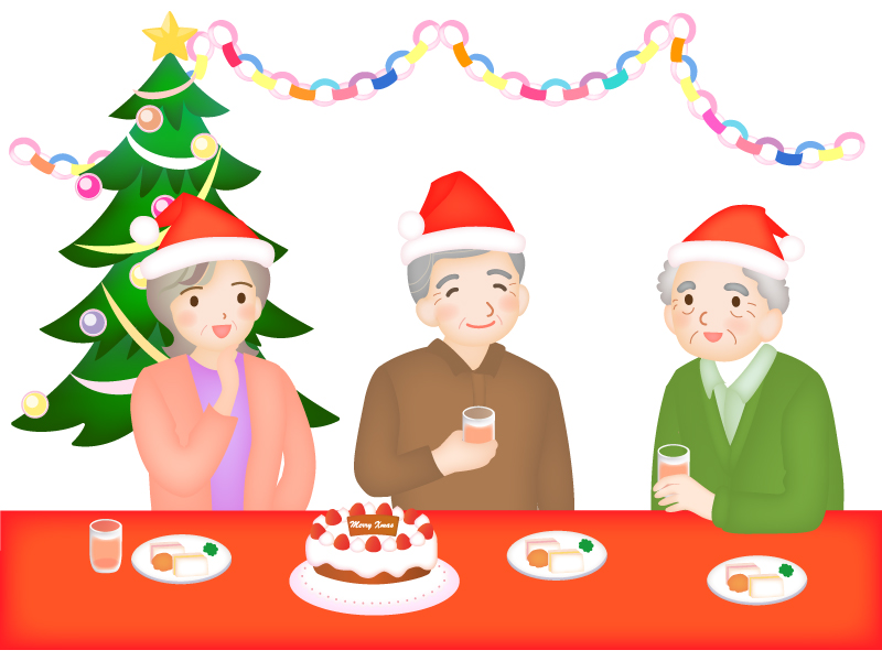 シニア・施設でのクリスマス会のイラスト02イラスト無料・かわいいテンプレート。