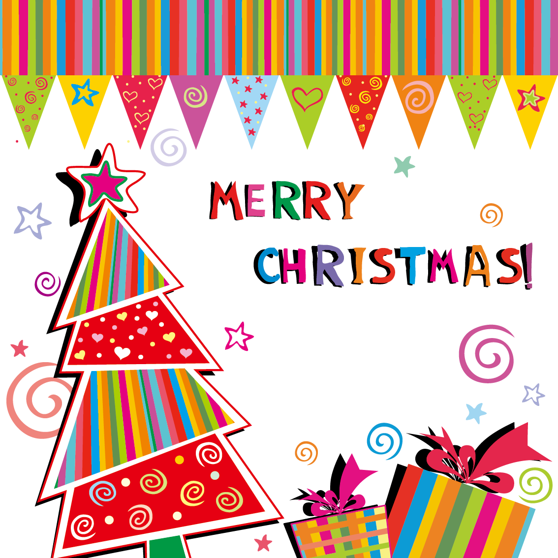 クリスマスのイラストNo.200『ツリーとプレゼント』 無料のフリー素材集 花鳥風月。