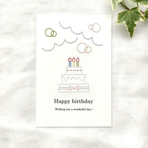 紙刺繍 バースデーカード ハッピーバースデー Happy birthday バースデーケーキ 封筒付メッセージカード mizuhiki 結色 通販15995788Creema クリーマ。
