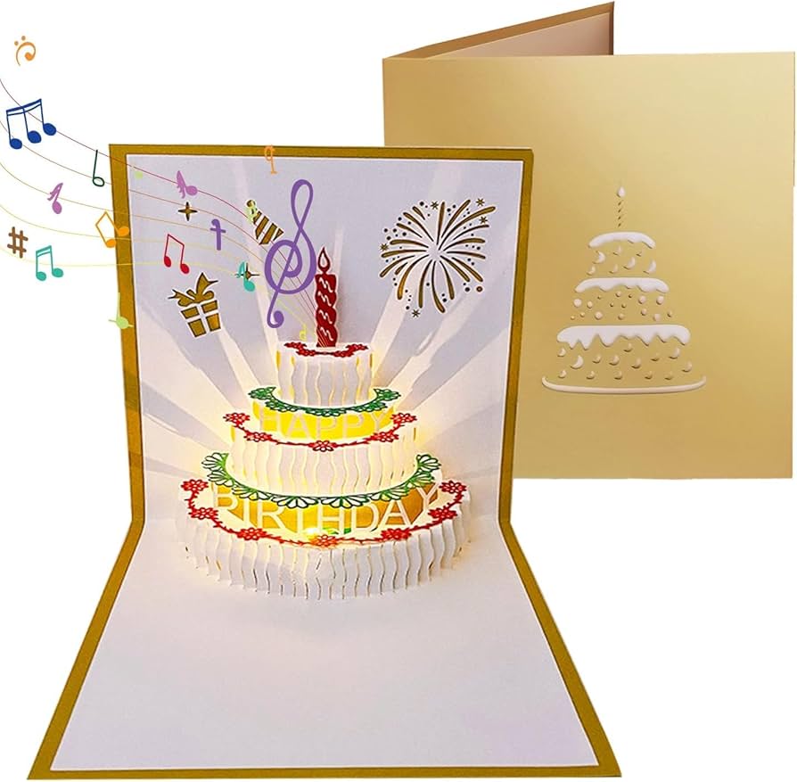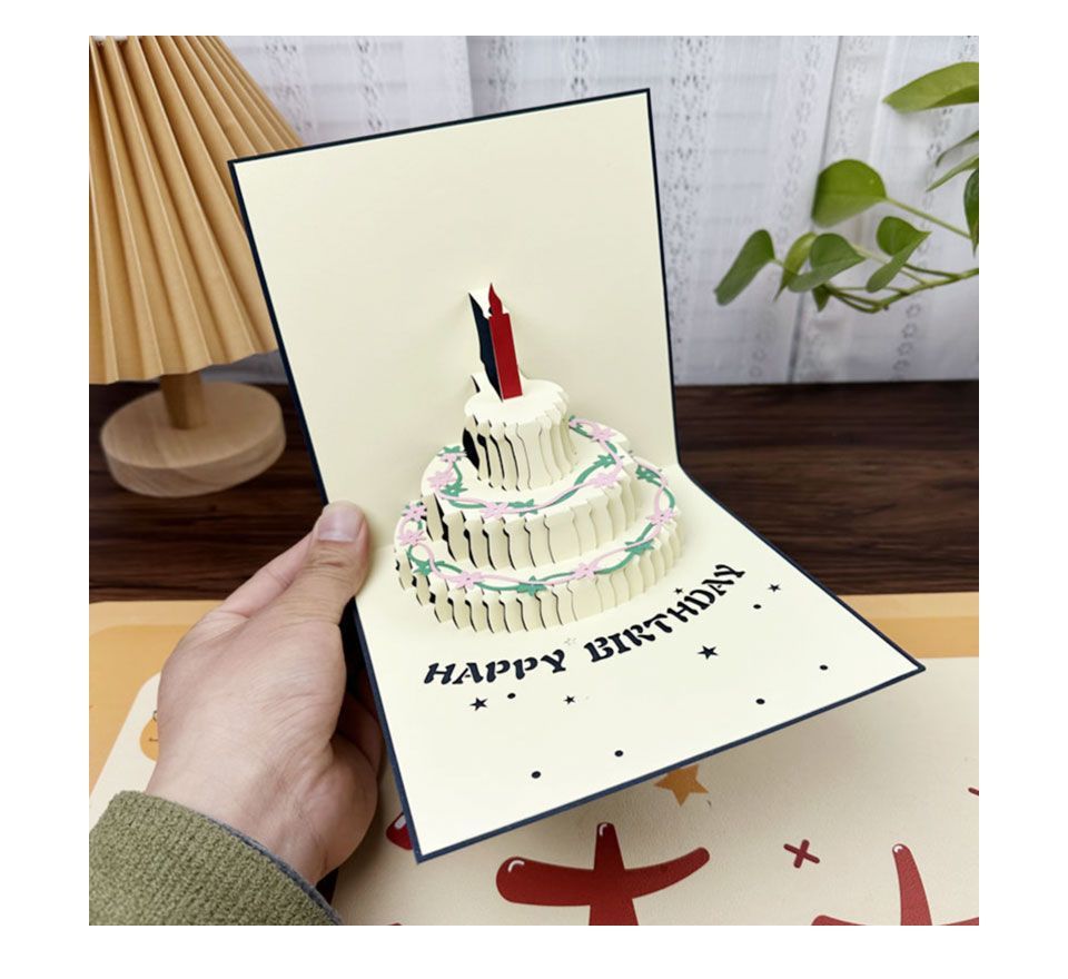 HAPPYBIRTHDAY 手紙 グリーティングカード 送料無料 誕生日 送料無料 ケーキ型 ポップアップ 飛び出す 3D立体。