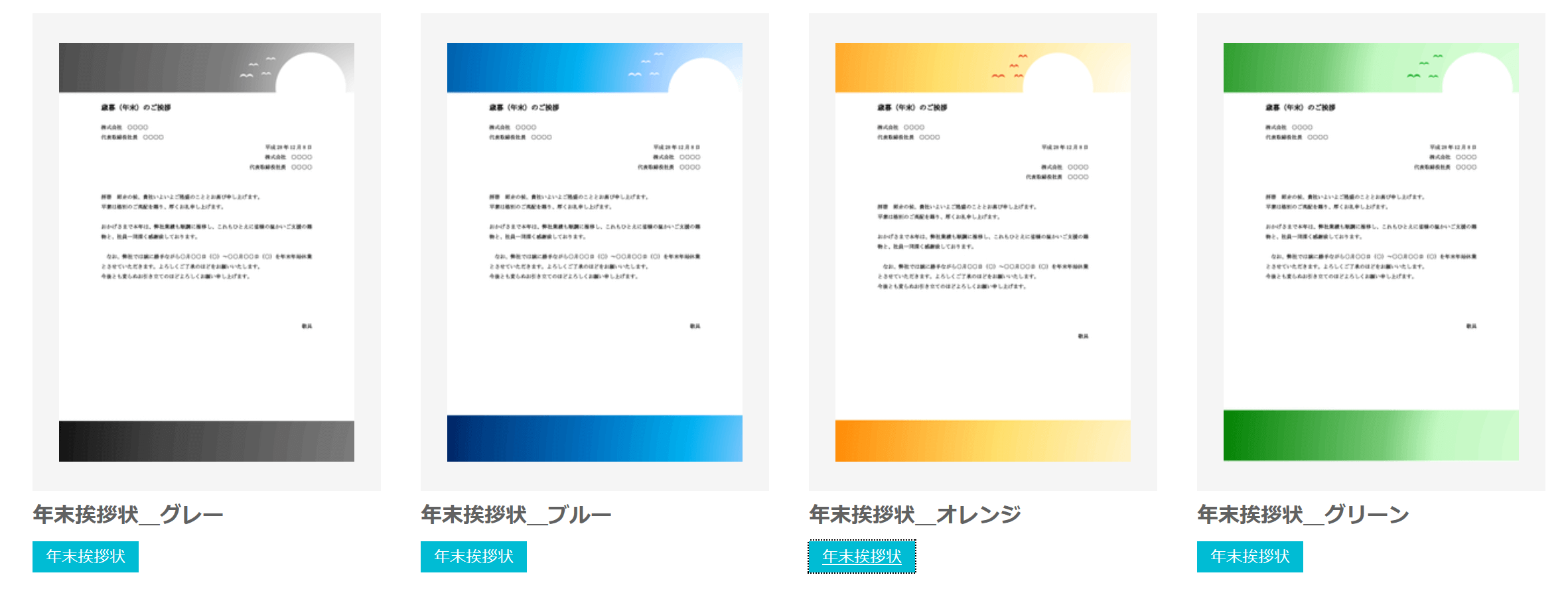 年末のあいさつ文 挨拶文・挨拶状文例・例文 テンプレート ビジネス 01 ビジネス文書形式ワード Word-文書 テンプレートの無料ダウンロード。
