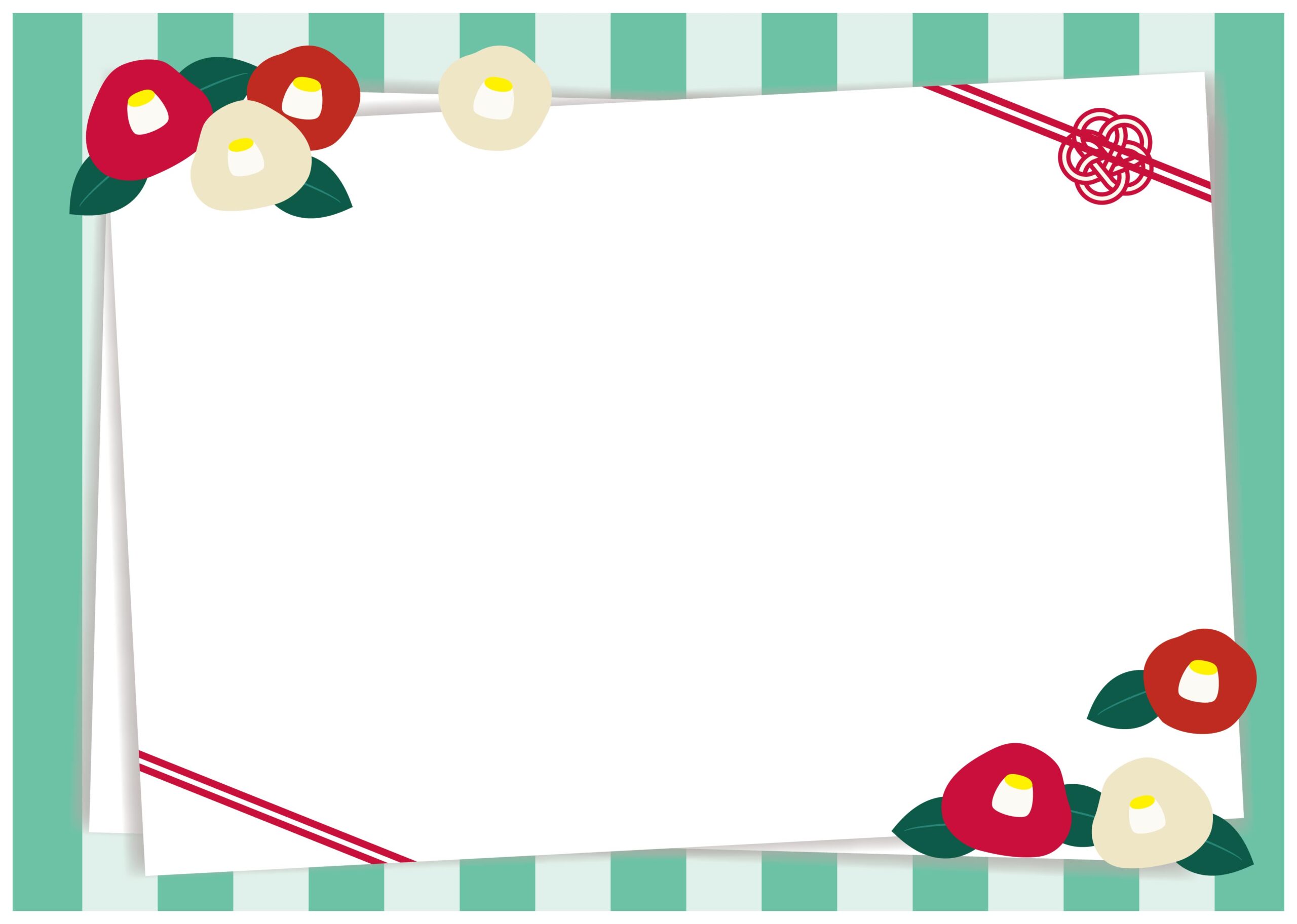 お歳暮のメッセージカード、年末年始のご挨拶に使えるフレーム素材・椿の花のイラスト、ストラ イラストボックス「プレミアム」テンプレート。