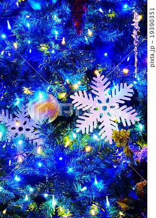 クリスマスイメージ・クリスマスツリーの白系雪の結晶・青系ベタ縦位置の写真素材19390351- PIXTA。
