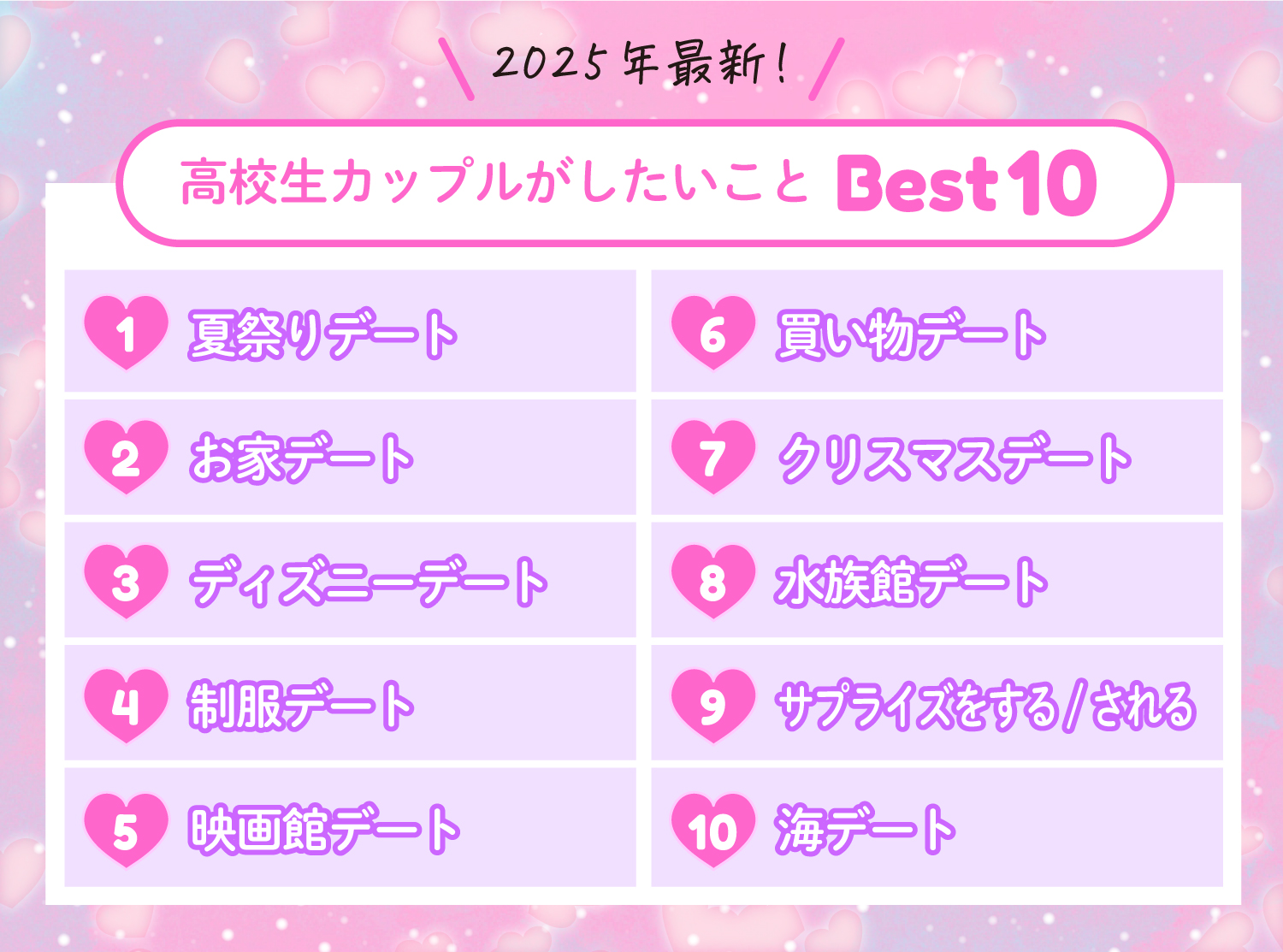 高校生カップルがしたいこと10選!今しかできないデート&平均交際期間もチェック 高校生なうスタディサプリ進路 高校生に関するニュースを配信。