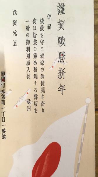 昔の年賀状☆戦中 絵葉書 郵便資料☆年賀状 日の丸と飛行機 謹賀戦勝新年☆軍事イラスト☆多色印刷 エンタイヤ 静岡消印☆戌寅 昭和13年의 상품 상세JDirectItems AuctionOne Map by FROM JAPAN。