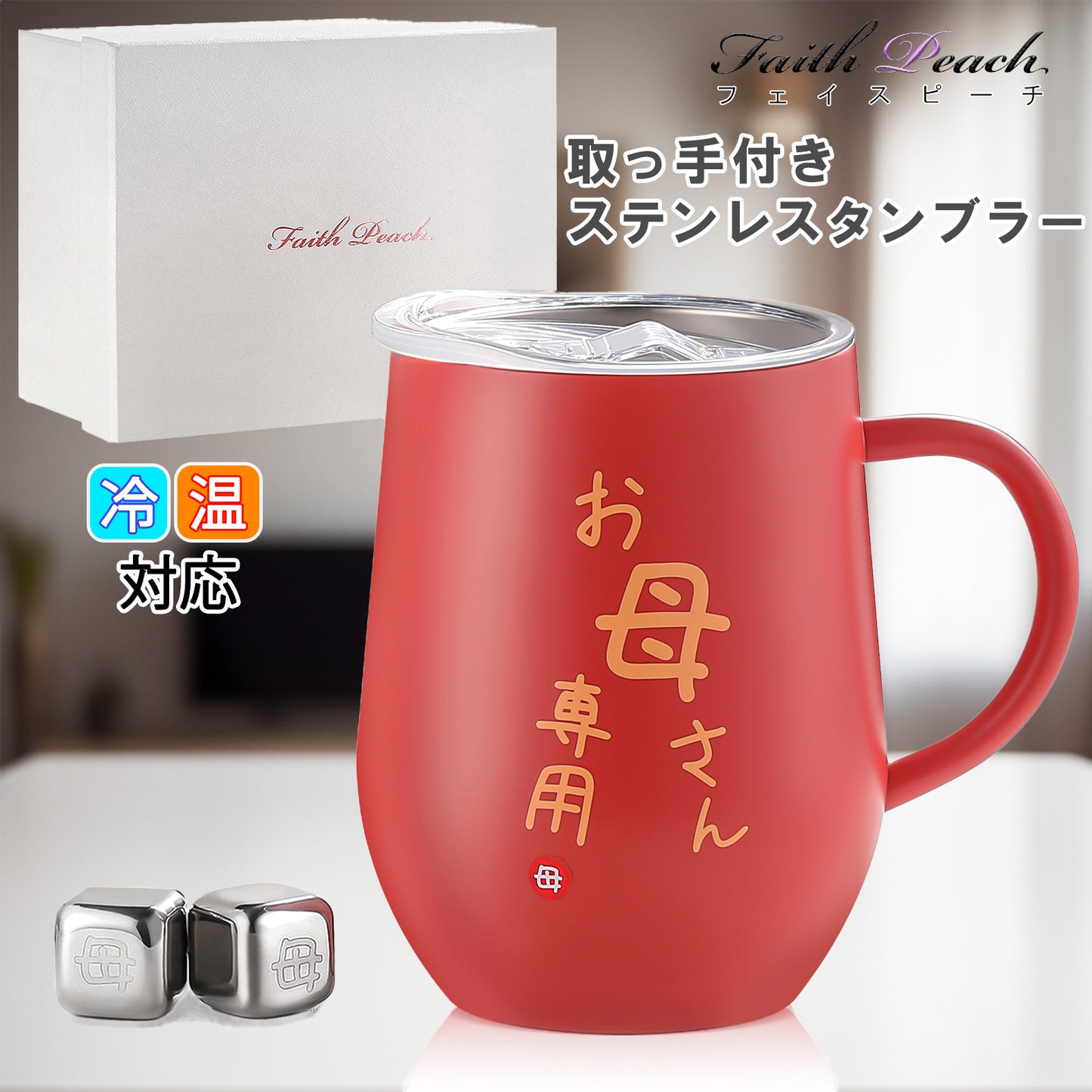 母の日 誕生日 プレゼント 還暦 祝い ステンレスタンブラー 350ml 取っ手付き お母さん ママ 母親 妻スカーレットレッド–フェイスピーチ。