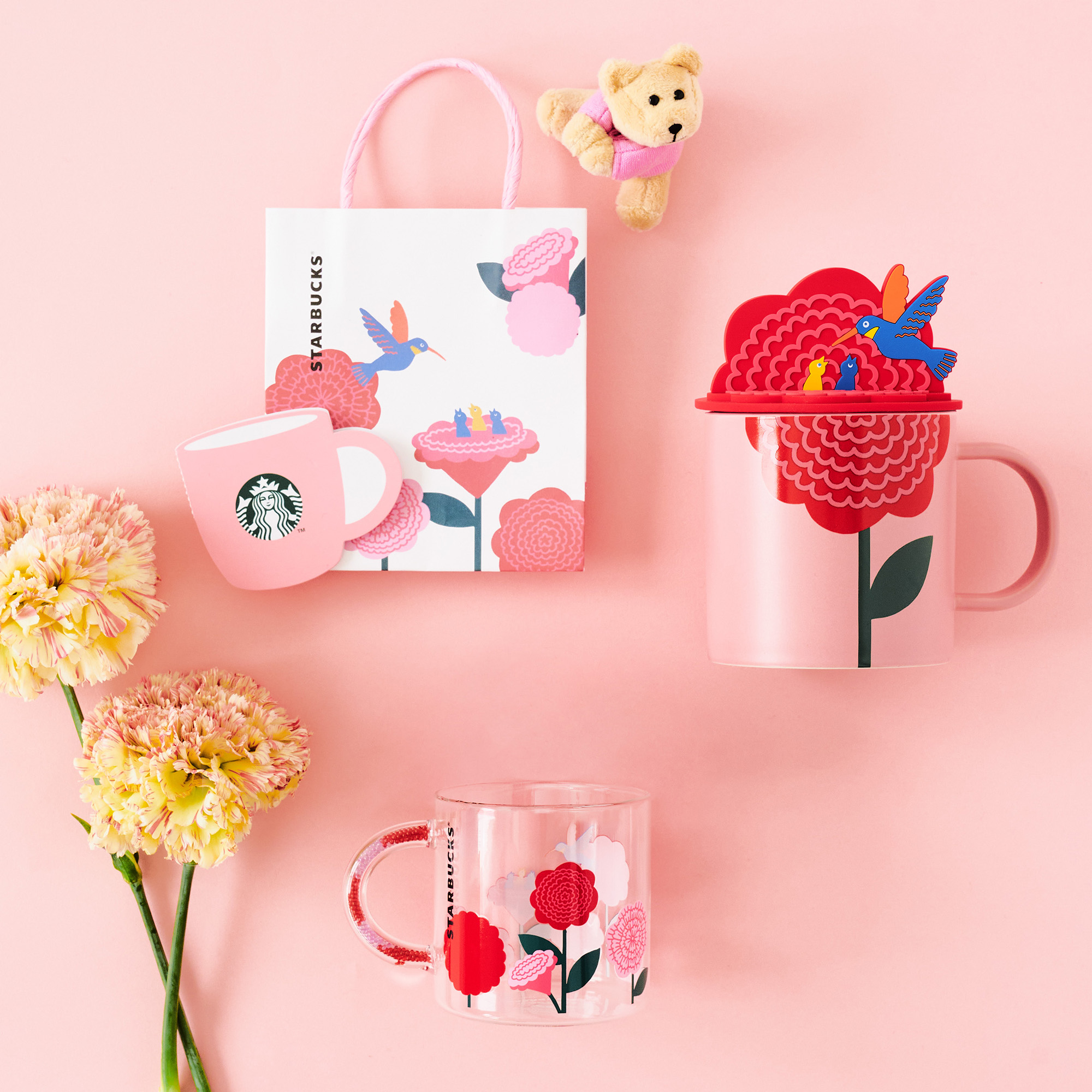 スタバ『母の日』グッズ2025年は淡色ピンクカラーやカーネーション♡耐熱ガラスマグカップ、ボトル、ベアリスタメッセージギフトなども新発売。