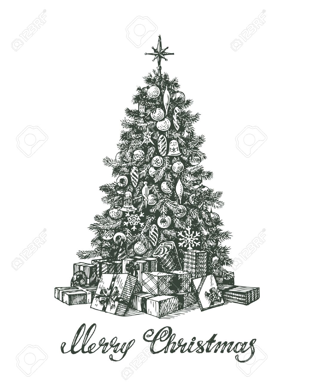 手描きのクリスマス ツリーとギフト。ベクトル イラストのイラスト素材・ベクター Image 33317906。