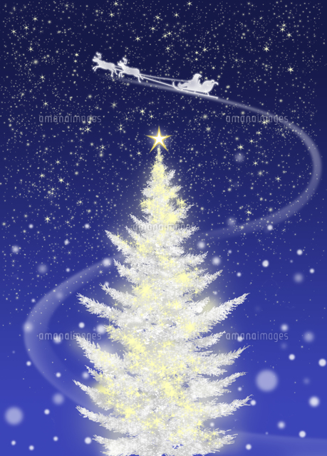 白いクリスマスツリーとソリに乗ったサンタクロース 02411000021 の写真・イラスト素材アマナイメージズ。