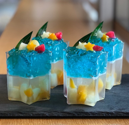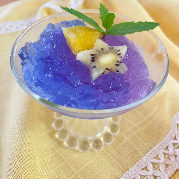 かき氷シロップとアガーで作る!プルプル食感「ブルーハワイ七夕ゼリー」。