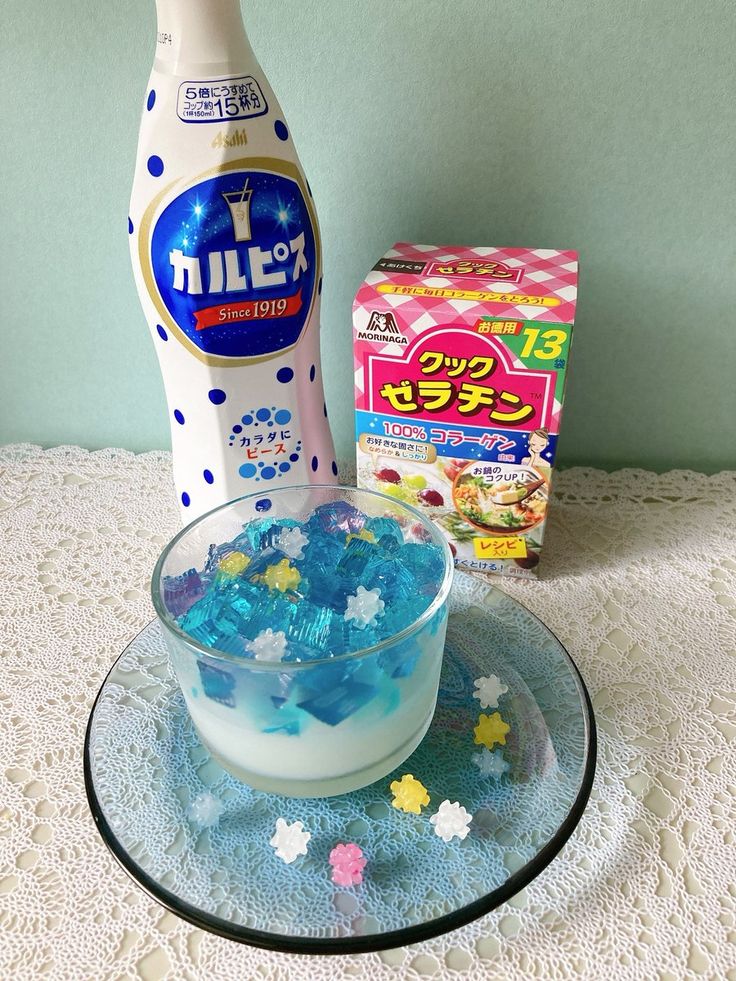 7 7は七夕 そして 🎋「カルピス」の誕生日🎋カルピス と三ツ矢サイダー で 七夕ゼリーを作ってみました! 2層がかわいいキラキラゼリー💫レシピはこちら♪ ☆「カルピス」のゼリー 熱湯200ml、粉ゼラチン5gを溶かし、「カルピス」100mlを混ぜて冷やす。 ☆「三ツ矢。