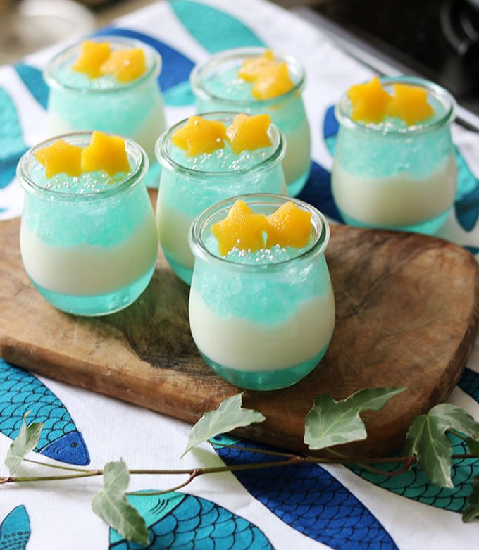 七夕スイーツ 青ゼリーの夜空に星キラリン♪「キラキラ2層ゼリー」作ってみた!ミルク寒天もキュン甘~♡『あたらしい日日』こんな時代のニューノーマルな暮らし方。食と農、生活情報をお届けします。