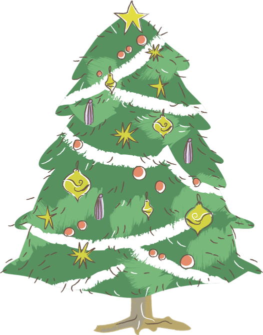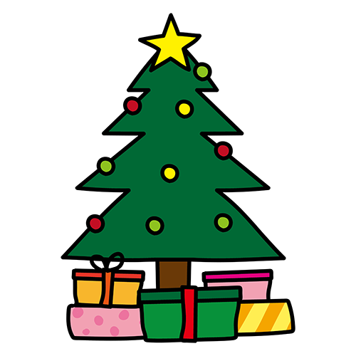 クリスマスツリーかわいい手描きの無料素材「てがきっず」保育園・小学校・介護施設にぴったりのフリー素材イラスト。