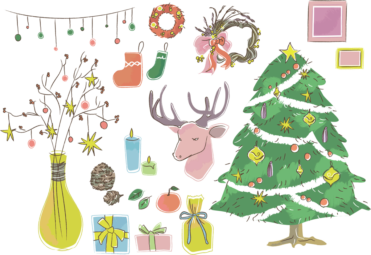 手書きイラスト無料クリスマス グッズ セットイラストダウンロード。